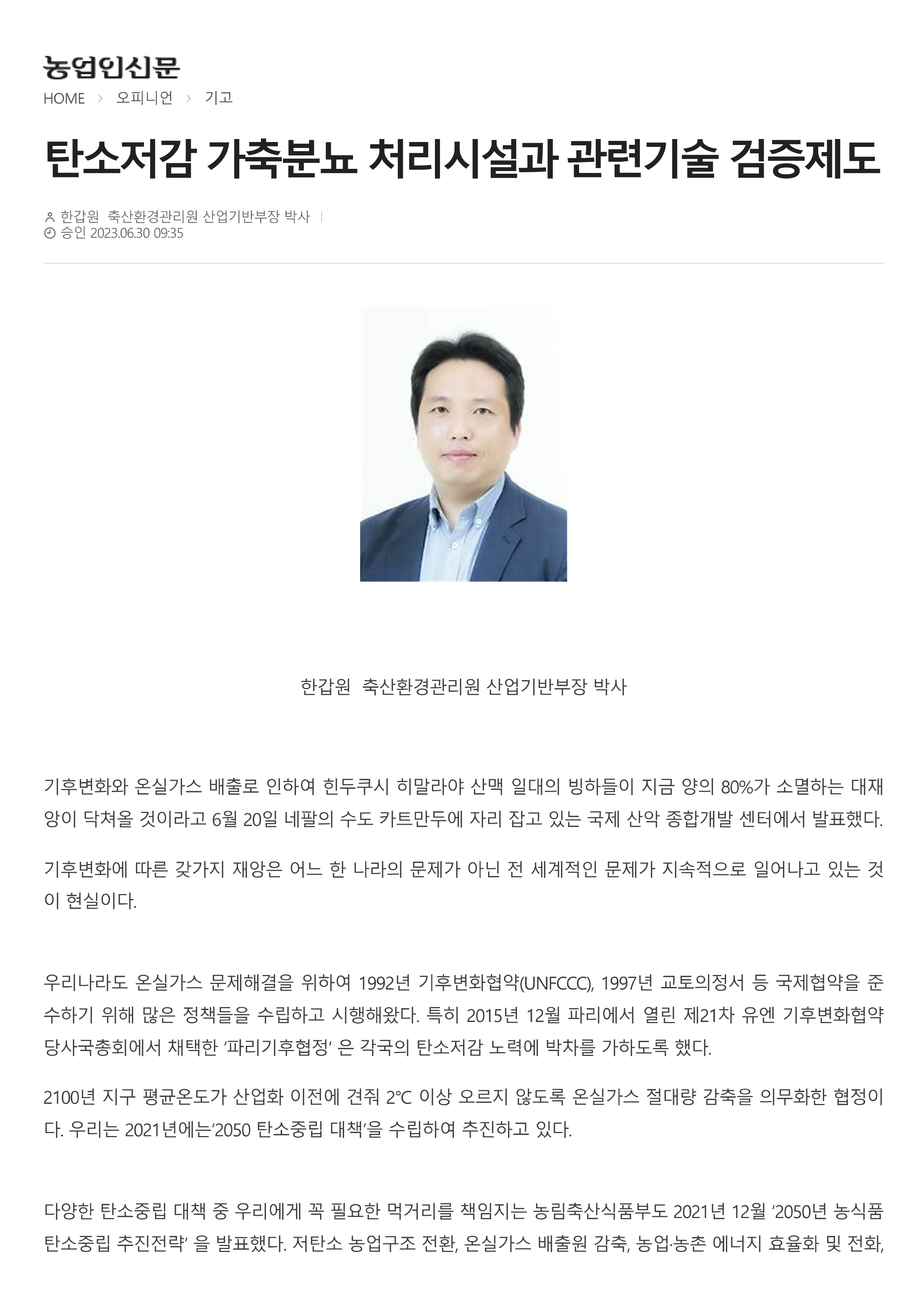 230630 [기고문] 탄소저감 가축분뇨 처리시설과 관련기술 검증제도(산업기반부 한갑원 부장).pdf